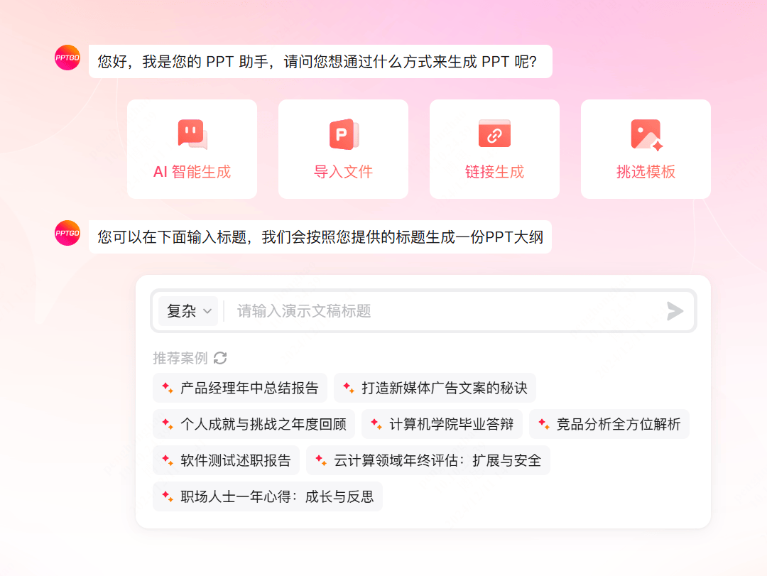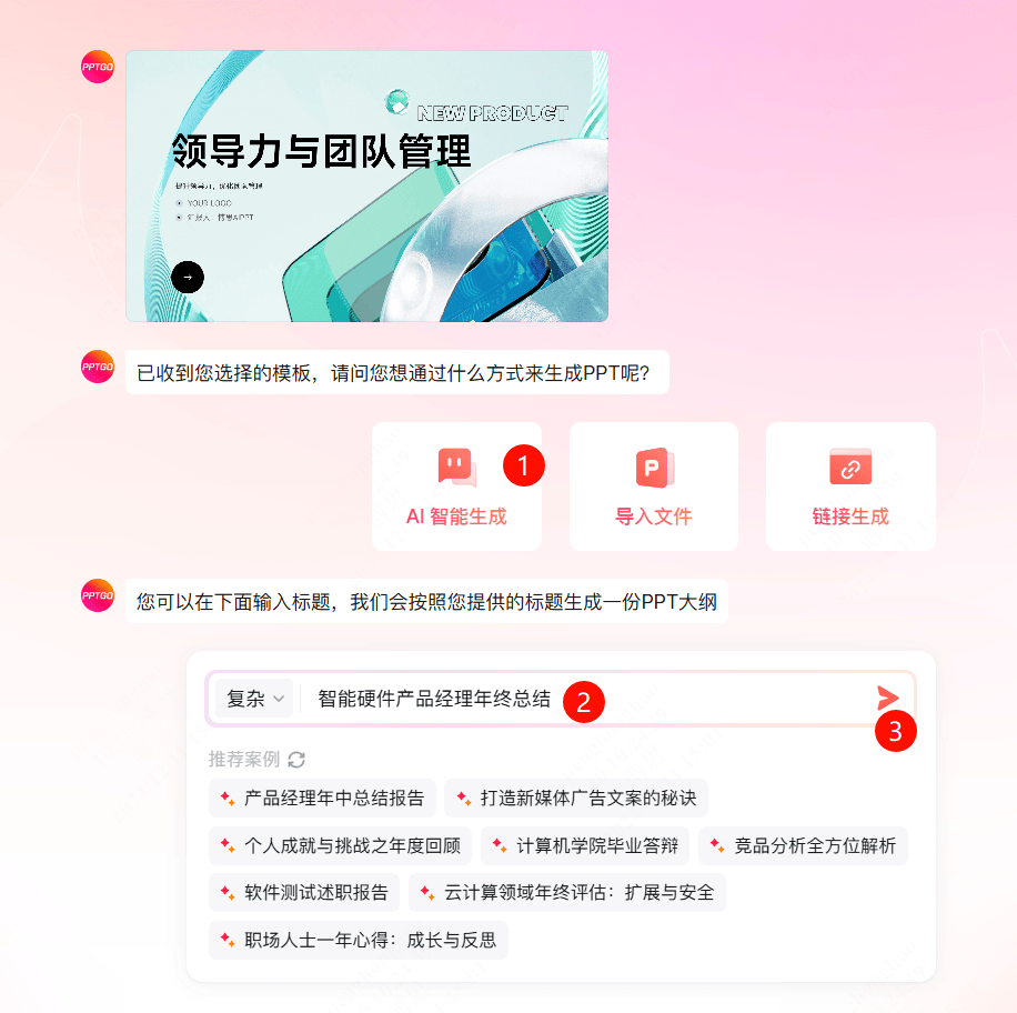 博思AIPPT将帮帮你轻松地建立精彩、专业的PPT,将链接发送给小伙伴,点击左上角的下一步按钮,