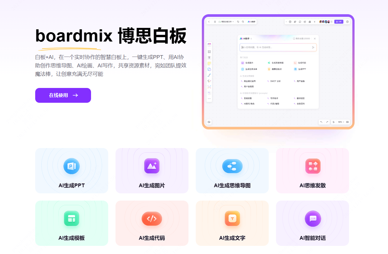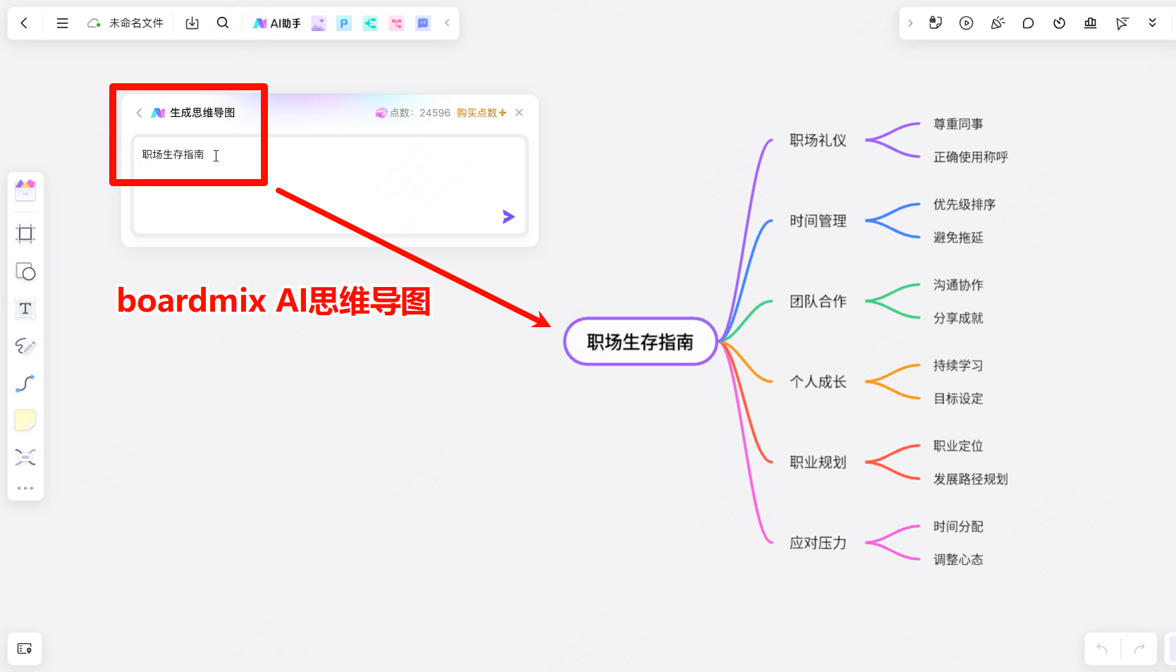 boardmix AI具有多种用处,以最受欢送的boardmix AI生成思维导图为例,不外话说回来,无需手动调整格局和排版,经AI提炼整合内容从动生成思维导图正比如来有个发布了一张超全的中国AI产物全景图,这里可按照现实环境选择,