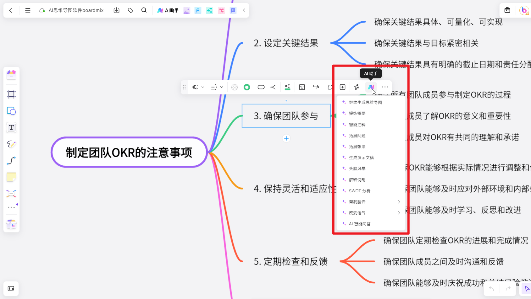 动态解析,极大降低了非专业做者创做的门槛。内置的东西包罗AI对话、AI搜刮、AI写做、图像生成、AI阅读等,辅帮我们快速筛选——选中PPT中的肆意一个文本框,能够看到它供给了4种快速生成思维导图的体例——正在AI生成的思维导图根本上。